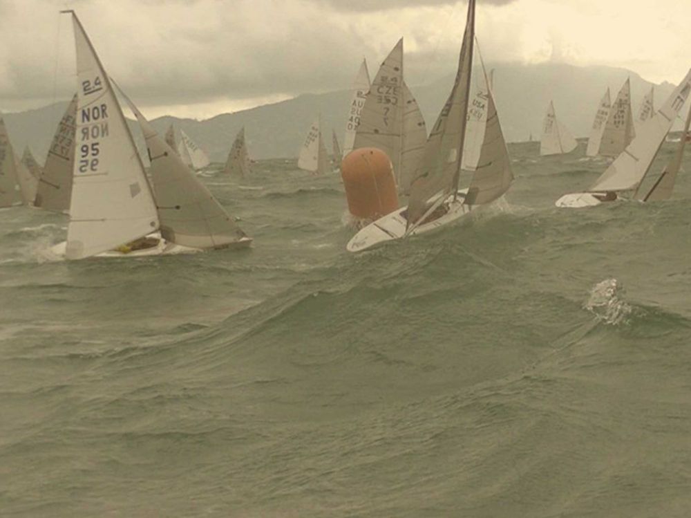 Die Regatten waren geprägt von ziemlich großen Wellen in der offenen Bucht von Genua. Da zum Teil die Wind- und die Wellenrichtung nicht übereinstimmte, erhöhte das die Probleme bei unseren und auch anderen Seglern, die diese Bedingungen noch nicht kennengelernt hatten, ihre Boote über Wasser zu halten. Bedingt durch das Salzwasser (höhere Leitfähigkeit als Süßwasser) fielen bei unseren Booten die Elektropumpen aus, und ständiges Arbeiten mit der Handpumpe fördert nicht gerade die seglerischen Leistungen.